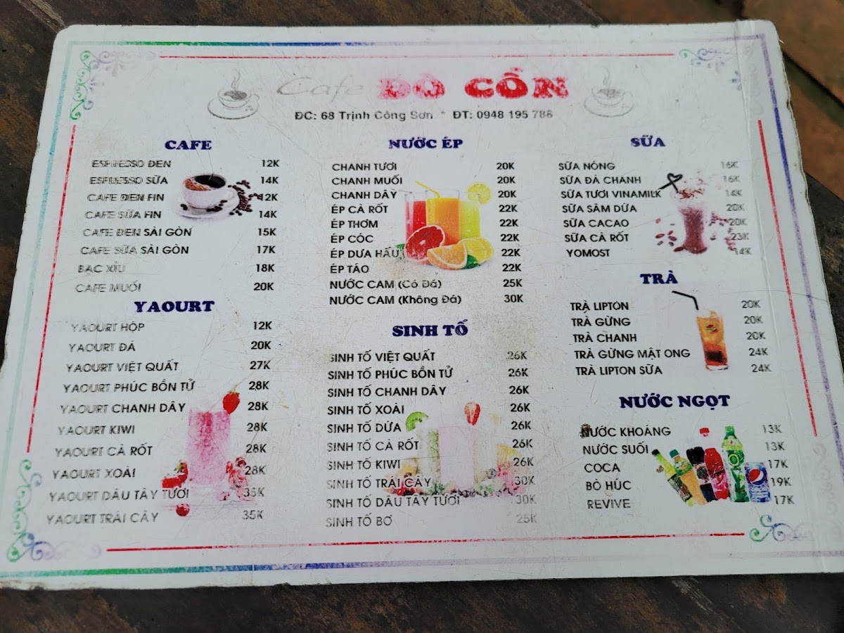 Cafe ĐÒ CỒN Menu